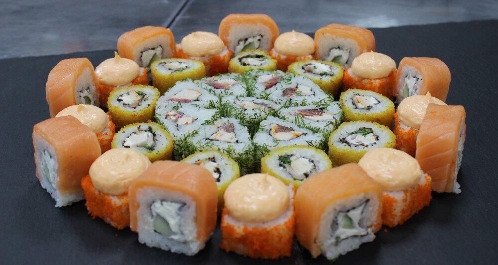 «Филадельфия с огурцом» 9шт, «Хоккайдо» 9шт, «Чикен» 9шт, «Аляска темпура» 9шт. ИМБИРЬ, ВАСАБИ, СОЕВЫЙ СОУС И ПАЛОЧКИ В КОМПЛЕКТ НЕ ВХОДЯТ.