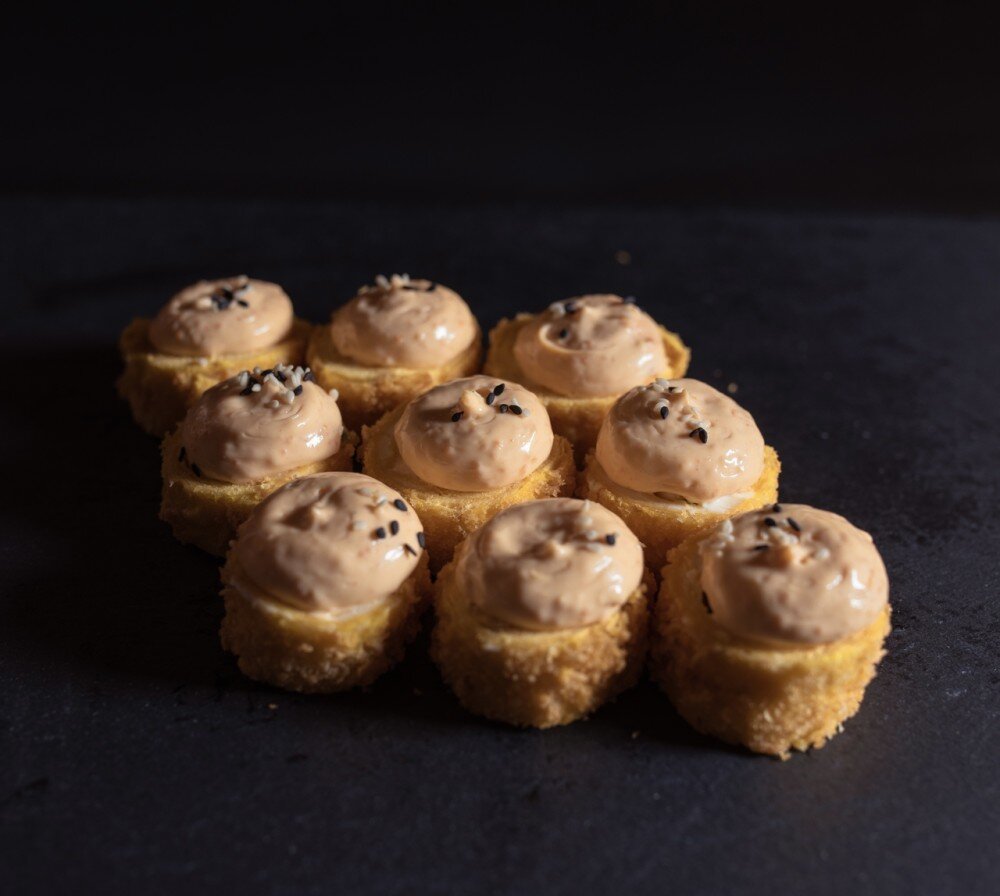 Сливочный сыр, тортилья, зеленый лук, бекон к/в, куриная грудка в/к, соус Спайси, украшается кунжутом, обжаренные в сухарях. ИМБИРЬ, ВАСАБИ, СОЕВЫЙ СОУС И ПАЛОЧКИ В КОМПЛЕКТ НЕ ВХОДЯТ.