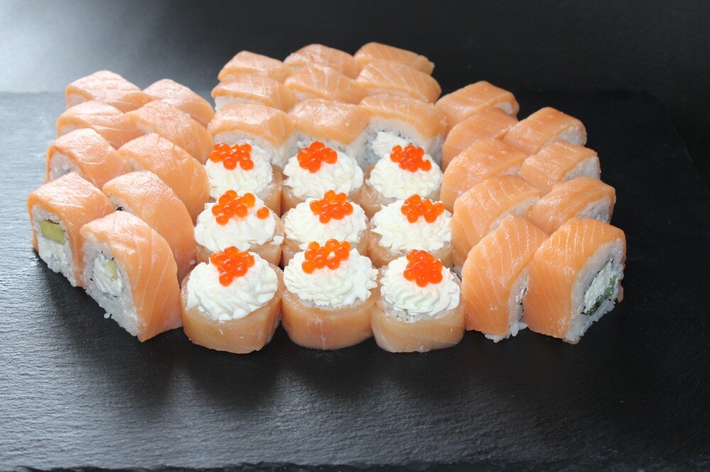 «Филадельфия люкс» 9шт, «Филадельфия Лайт» 9шт, «Филадельфия с зеленым луком» 9шт, «Филадельфия с огурцом» 9шт. ИМБИРЬ, ВАСАБИ, СОЕВЫЙ СОУС И ПАЛОЧКИ В КОМПЛЕКТ НЕ ВХОДЯТ.