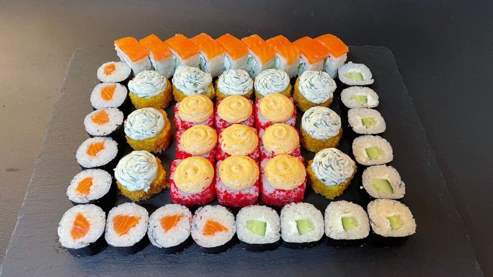 «Филадельфия лайт» 9шт , «Сяке маки» 9шт, «Калифорния лава» 9шт, «Капа маки чиз» 9шт, «Хот ролл с курицей» 9шт. ИМБИРЬ, ВАСАБИ, СОЕВЫЙ СОУС И ПАЛОЧКИ В КОМПЛЕКТ НЕ ВХОДЯТ.