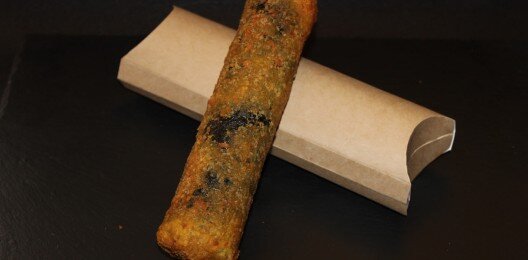 Рис, нори, лист салата, огурец, помидор, куриная грудка в/к, соус цезарь, кляр, сухари.
