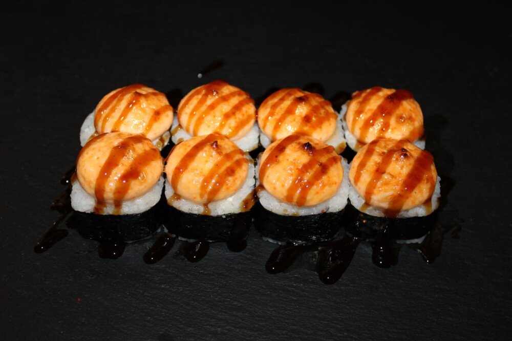 Креветка,сливочный сыр,соус спайси,соус унаги,рис,нори