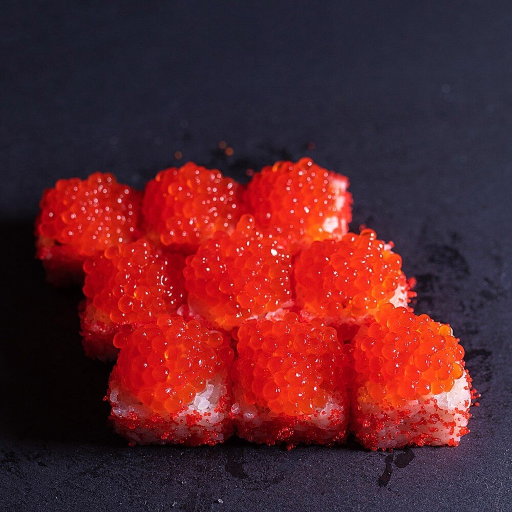 Сливочный сыр, икра масаго, имитация икры, рис, нори. ИМБИРЬ, ВАСАБИ, СОЕВЫЙ СОУС И ПАЛОЧКИ В КОМПЛЕКТ НЕ ВХОДЯТ.